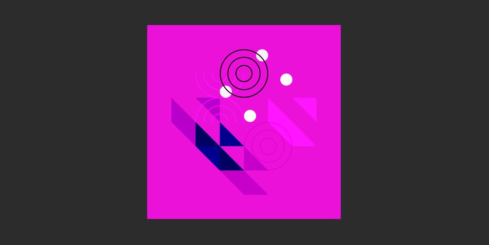 - experiment with different shape amount / size / position / colour / blend mode / gradient type and more