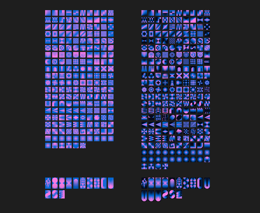 Each gradient has 2x color variations - 2 colors and 3 colors.
